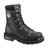 | ✚✚✚ Camshaft Boot - Harley Davidson Men's Full grain leather upper with metal rivet accents. Metal logo hardware at toe, heel and shaft. Full-length cushioned footbed. YKK® locking inside zipper for easy on and off. Durable Goodyear welt construction. Lugged rubber sole. 9" shaft height. Color: Black
