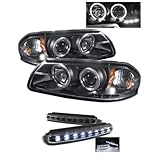 Chevy Impala Halo LED ( Non Replaceable LEDs ) Black Projector Headlights & LED Day Time Running Light Package